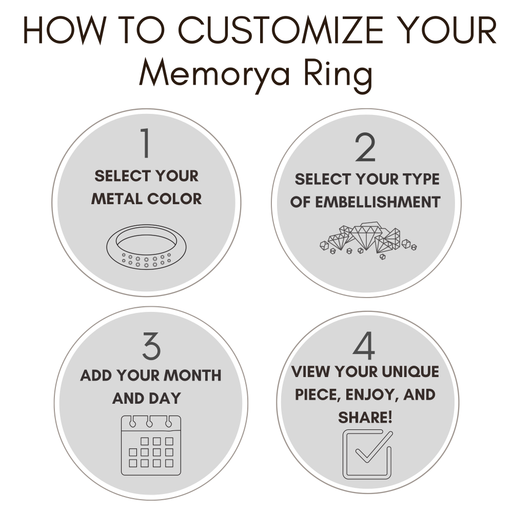 Designed with our signature TouchDate Technique to display the month and day of any date close to your heart. Half of the ring displays the numbers of stones corresponding to the month; the other half, the day.