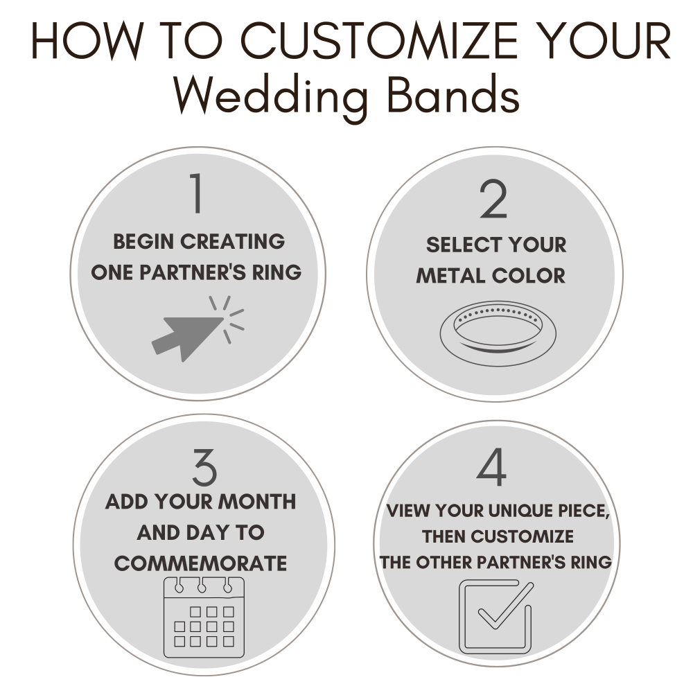 Your wedding date is hidden on the inside of your band, a secret that only you and your spouse can see and feel. Crafted using our signature TouchDate Technique, with domed dots that represent the month on one side and the day on the other.
